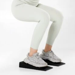 The Squat Wedge Block is an oblique block that is a good tool for stretching the hamstring and calf muscles, as well as an excellent tool for placing your heels under your heels during squats.