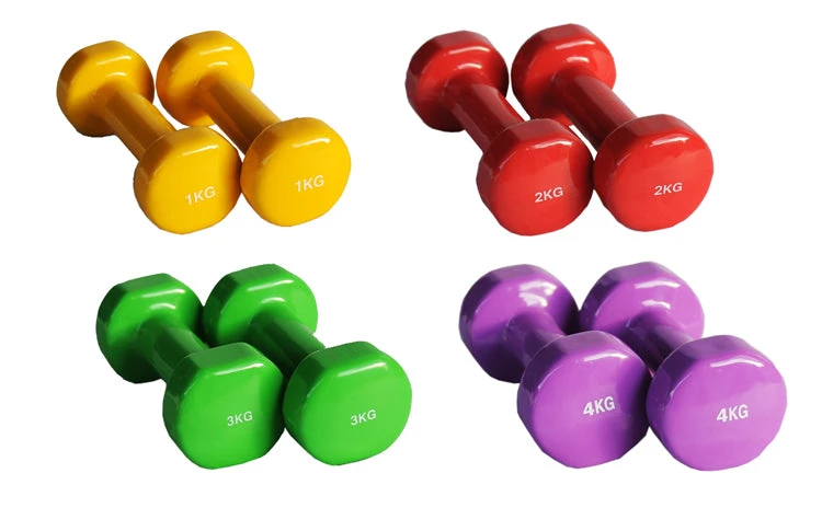 Colorful Vinyl Coated and made from cast iron Hexagonal ends to prevent rolling