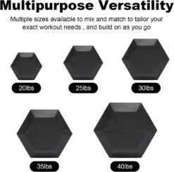 - Available in multiple sizes (20lbs, 25lbs, 30lbs, 35lbs, 40lbs) , our hex dumbbells cater to different fitness levels, allowing you to select the hand weights that offer flexibility and customization to your workout routine.